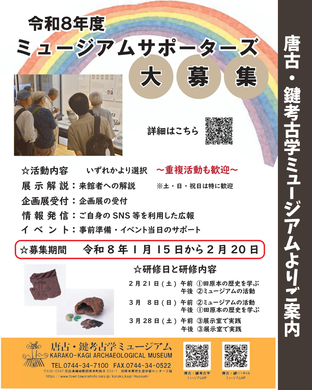25/12/18 [お知らせ]唐古・鍵考古学ミュージアム 令和8年度ミュージアムサポーターズを募集 25/12/12 [スポット・商品紹介]田原本町のいちご農園ハッピーイチゴランドのご紹介 25/11/27 [お知らせ]「ナウル屋田原本町出張所」が2025/11/28「観光ステーション磯城の里」にOPEN 25/11/19 [お知らせ]田原本駅前広場出店情報 11月21日~30日まで 25/11/19 [お知らせ] 25/11/11 [お知らせ]田原本駅前広場出店情報 11月11日~20日まで