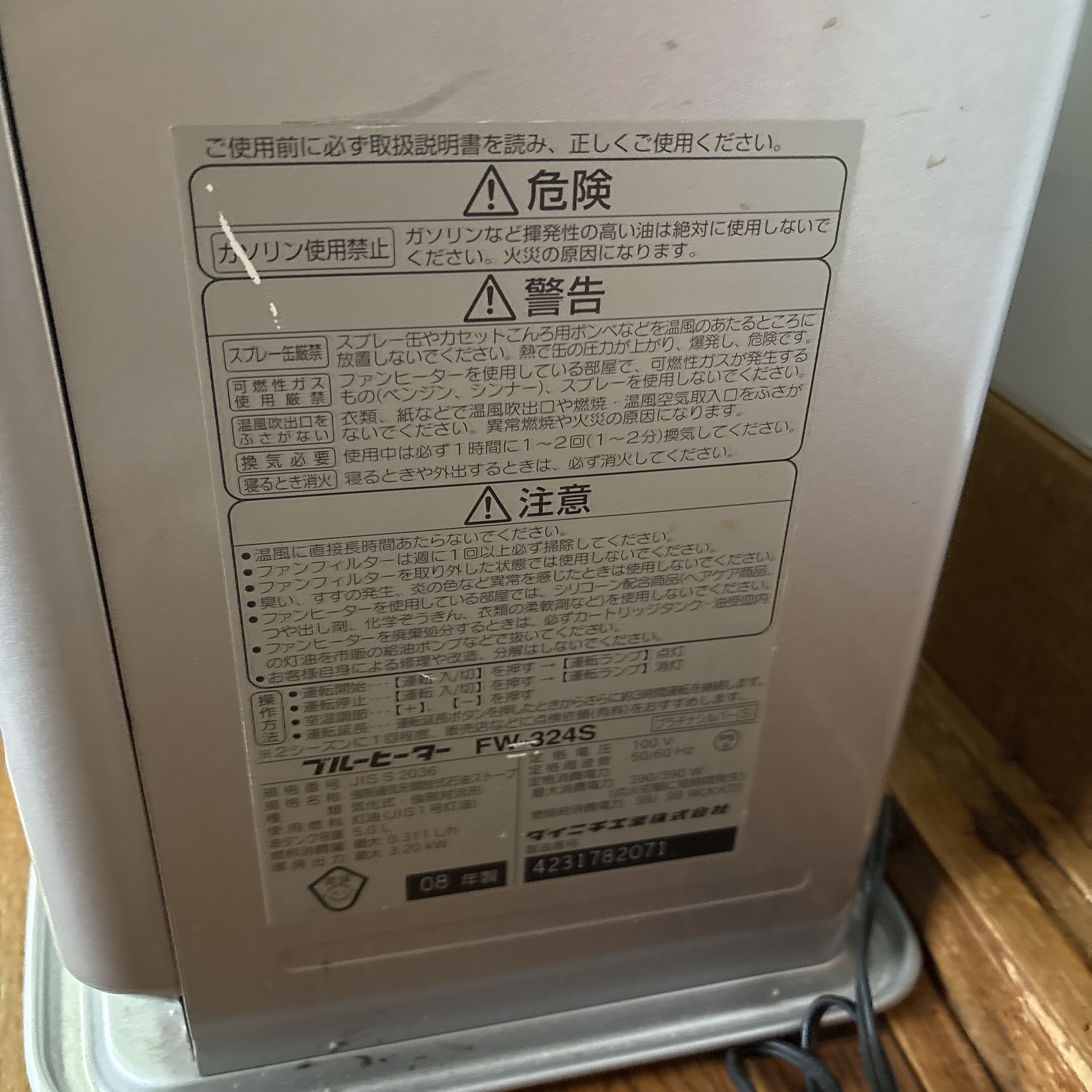 ダイニチ工業、 ブルーヒーター FW 324S、 サイズ:約横32、高さ43、奥行き23cm